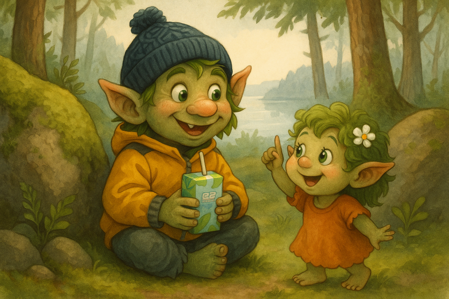De smög ut genom trollhusets lilla trädörr. Doften av fuktig mossa och tallbarr fyllde luften.