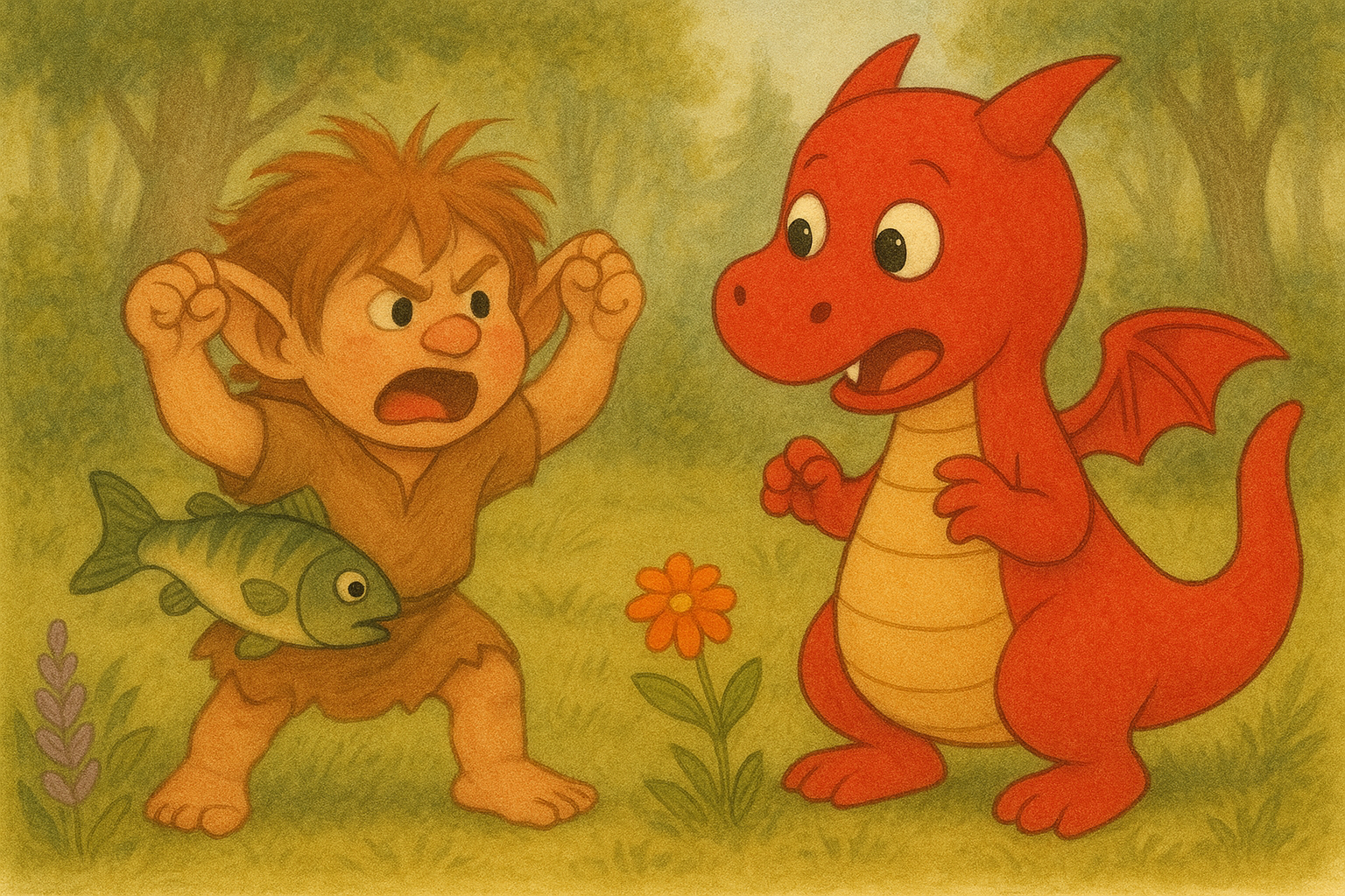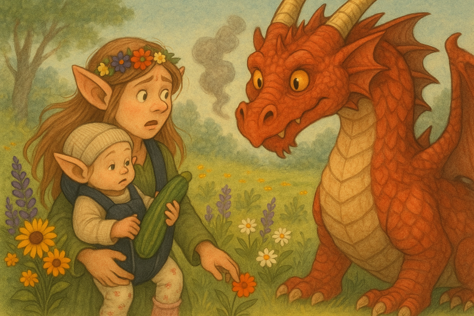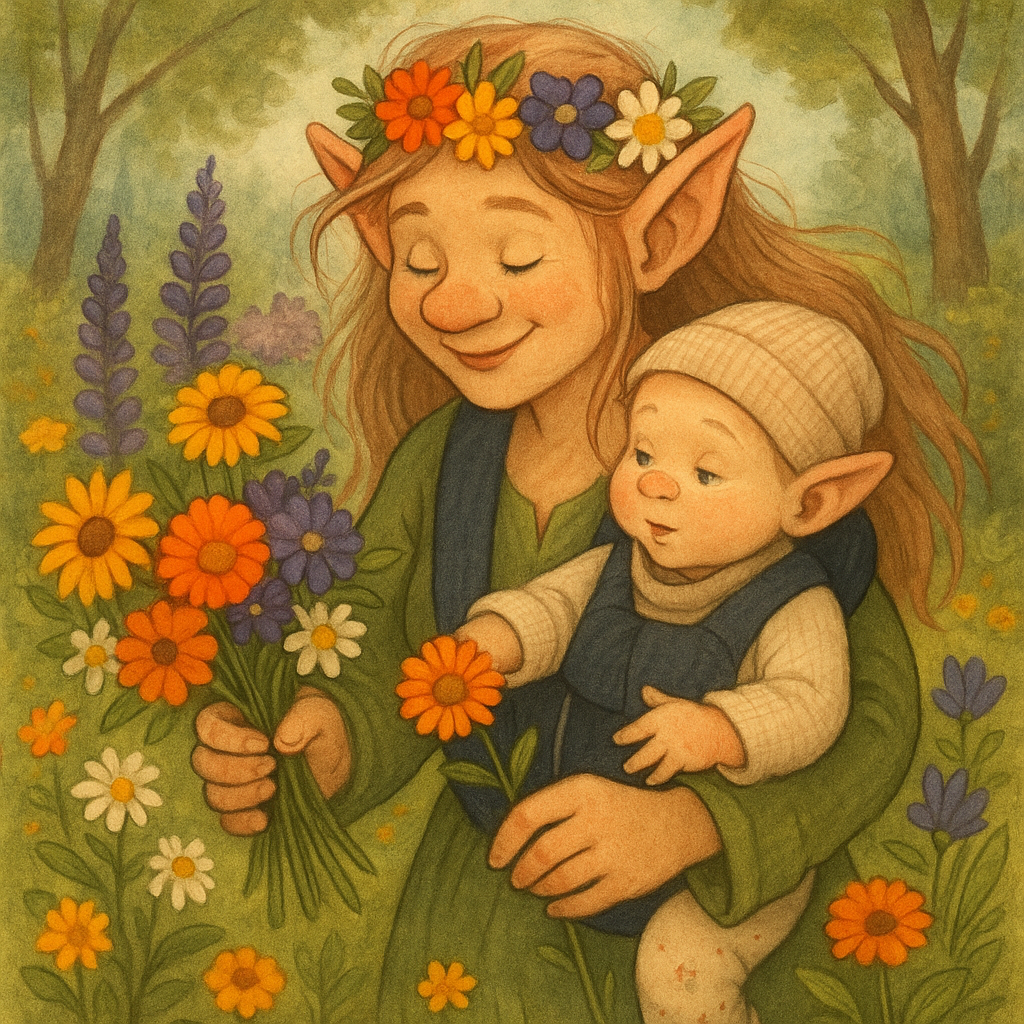 När dagen var slut satt alla tillsammans på Hammarbacken — trollen, draken, blommorna och dagens skörd — och det kändes som att världen blivit lite större och mycket vänligare.
